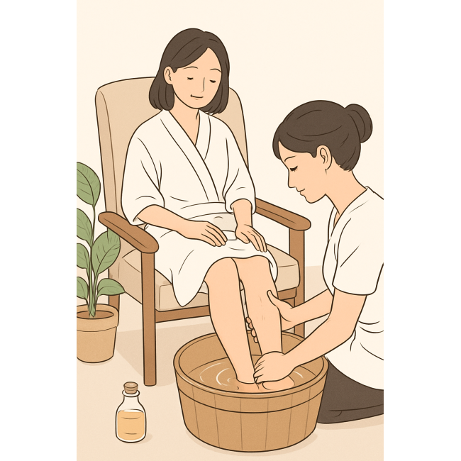 また、自宅でできる簡単なフットケアを取り入れる方も増えています。たとえば、10〜15分程度の足湯、両手で足裏のアーチを軽く押す、ふくらはぎをやさしくなでる といった軽いケアは、寝る前のリラックス習慣として取り入れやすい方法です。ただし、必要以上に強く押さないことが大切で、心地よいと感じる範囲で行うのが基本です。よりしっかりケアしたい方は、専門店の施術と組み合わせるとバランスが良いでしょう。